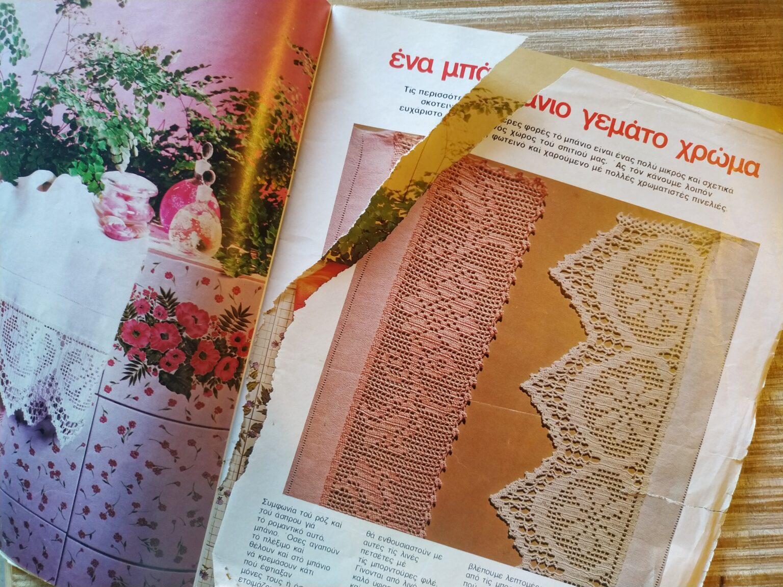 Στη μόδα τότε οι κορδέλες στα μαλλιά και τα πλεκτά σετ, μπλουζάκια και τουνίκ για το καλοκαίρι και μακριές ρομαντικές νυχτικιές από μετάξι. Ιδέες παλιές και νέες και οι αναγνώστριες ρωτούν και οι απορίες λύνονται. Σα ν’ ακούω τα χέρια στη γραφομηχανή των ανθρώπων του περιοδικού. Εκεί που ξεκινήσαμε όλοι να γράφουμε, χτυπώντας με δύναμη το κάθε πλήκτρο και όταν πια είχε ξεπάρει το χέρι γράφοντας βιαστικά, μέχρι να κολλήσουν όλα μαζί τα γράμματα στην υποδοχή των πλήκτρων και με το χέρι να τα τραβάμε ένα ένα πίσω ακούγοντας τον χαρακτηριστικό τους ήχο κι αφήνοντας ίσως λίγο μελάνι στο δάχτυλο. Τί χρόνια!